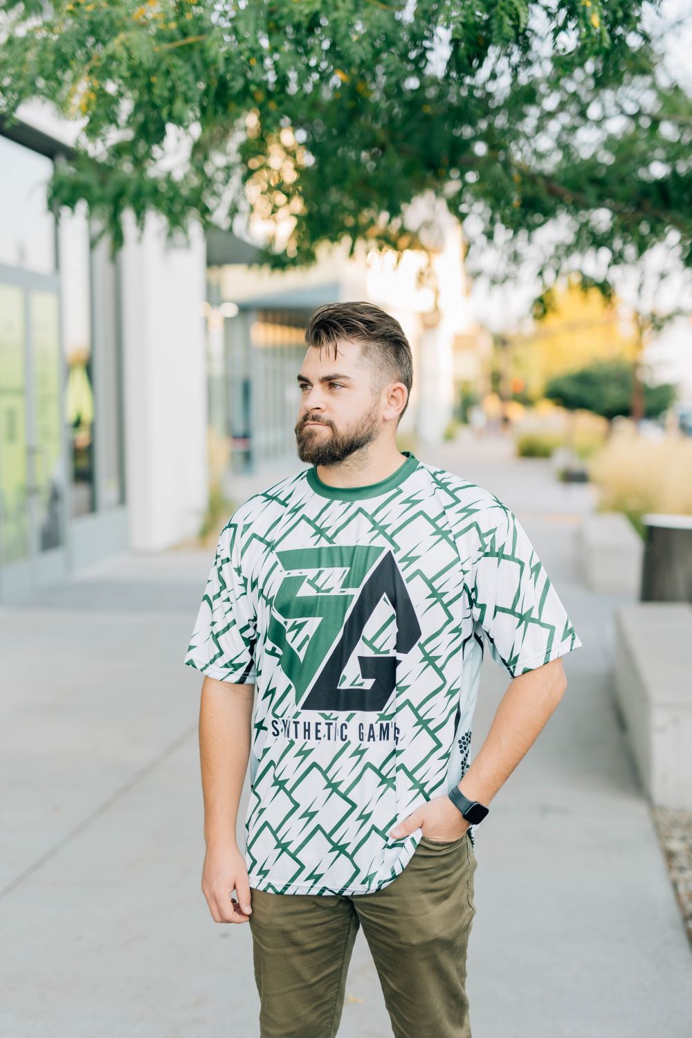 The jersey proudly displays the Synthetic Gaming logo, allowing you to show your allegiance to the gaming community. With its athletic fit and sleek design, this jersey is ideal for both casual wear and competitive play.